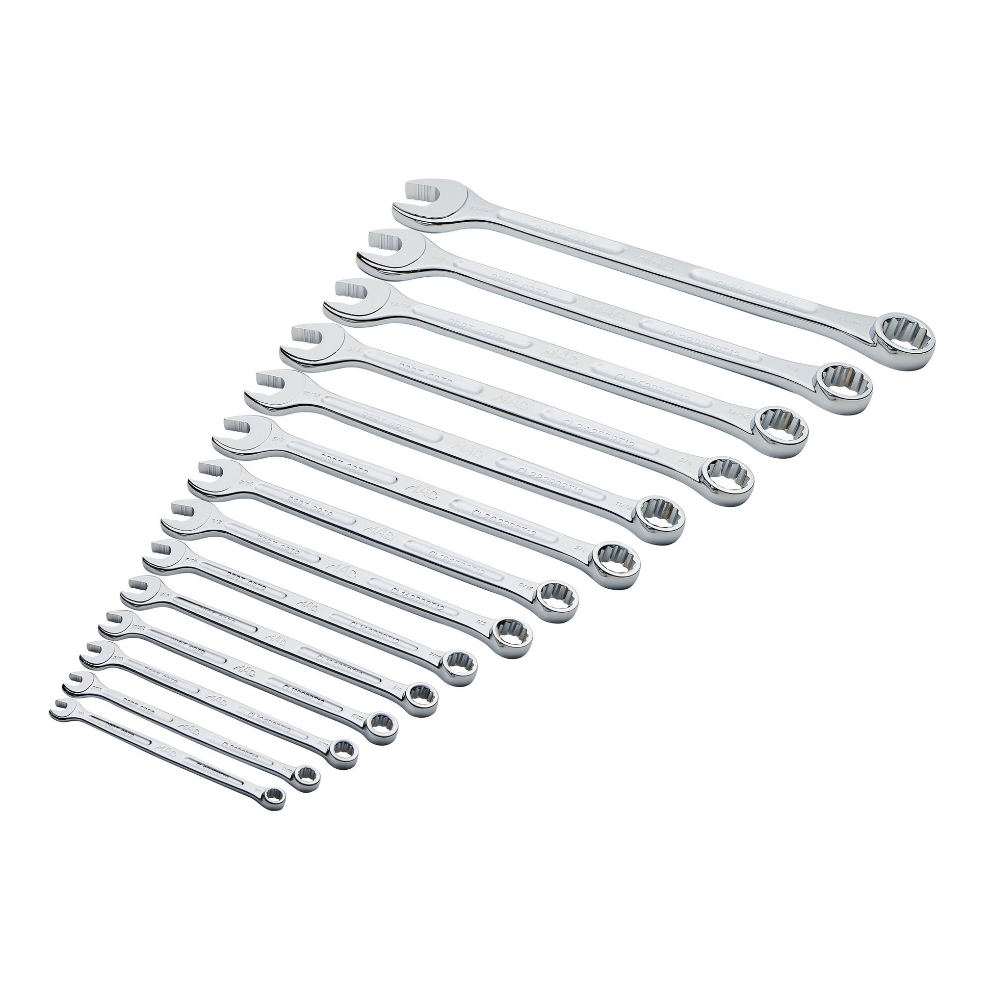 - ¼”, 9/32”, 5/16”, 11/32”, 3/8”, 7/16”, ½”, 9/16”, 5/8”, 11/16”, ¾”, 13/16”, 7/8”, 15/16”